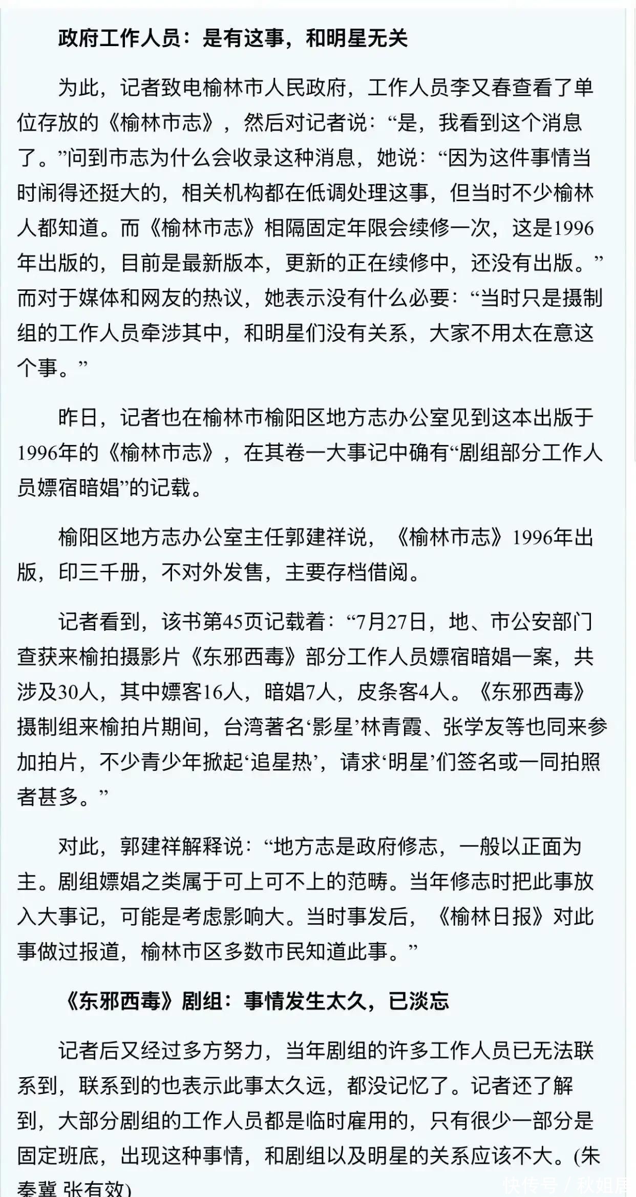 早在1993年拍摄《东邪西毒》时,就有传闻称全组30余人涉及非法活动。