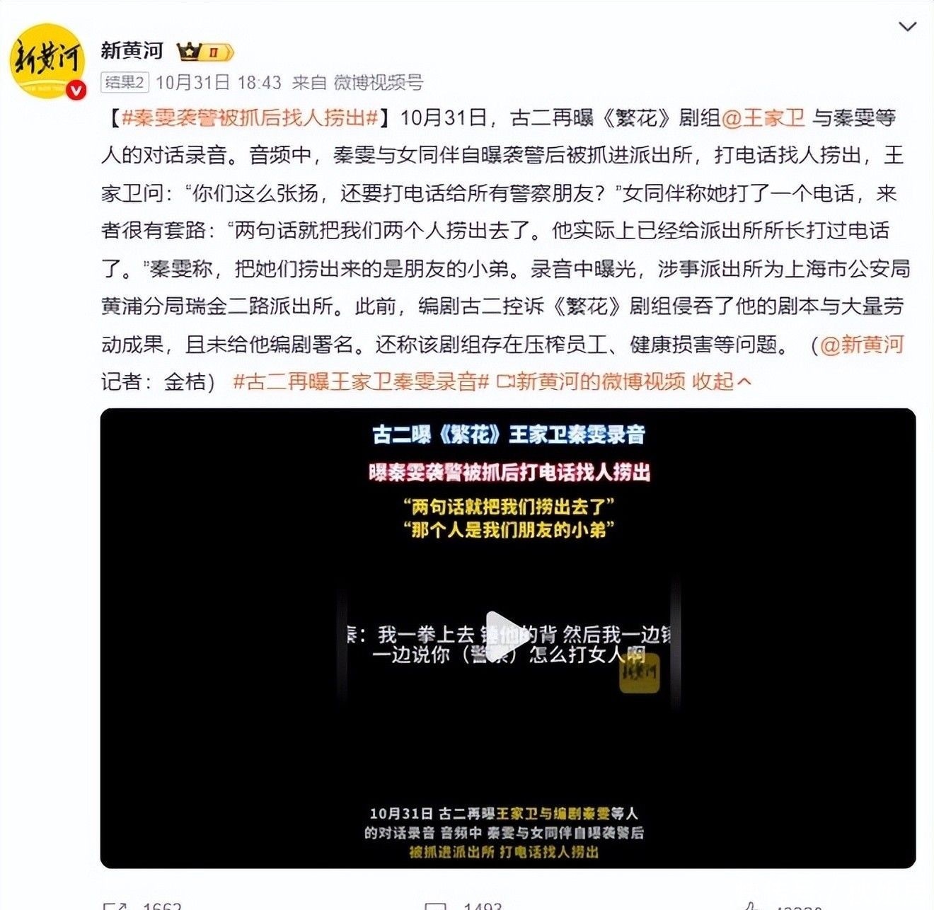 而那位在录音中频繁诋毁他人、还自曝袭警经历的编剧秦雯,也迎来了属于她的清算。